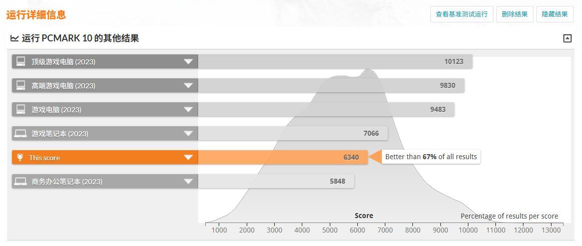 在PCMARK 10的在線結果評比中,對比其他參與測試的高性能電腦,這臺迷你主機的得分好過67%的機型,與之相似的高端商務辦公筆記本和遊戲筆記本得分與它相似。