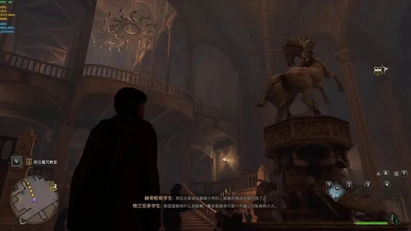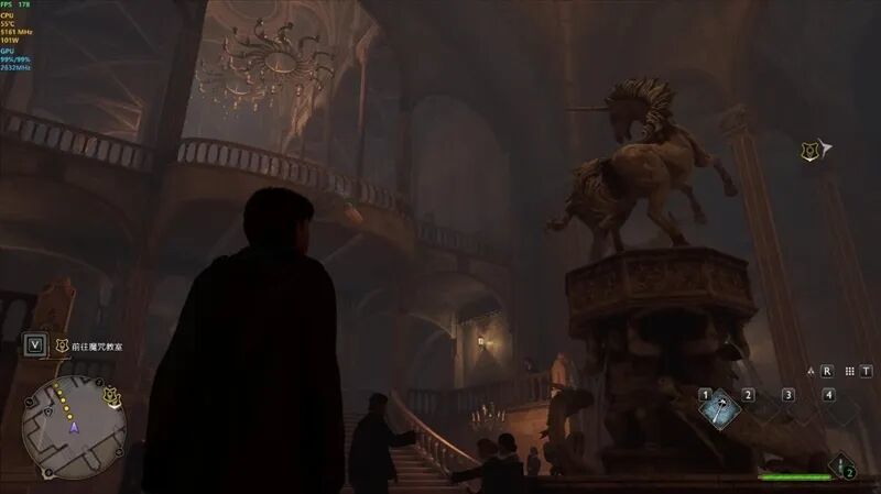 在《霍格沃茲之遺》中,使用超高畫質預設,DLSS超分辨率設置爲平衡,記錄4K分辨率下的遊戲幀數。