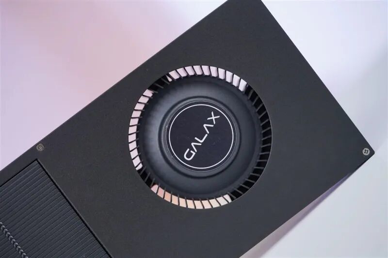 影馳RTX 5060 Ti無雙MAX顯卡尾部的渦輪風扇特寫,規格爲9010,直徑90mm,厚度10mm。