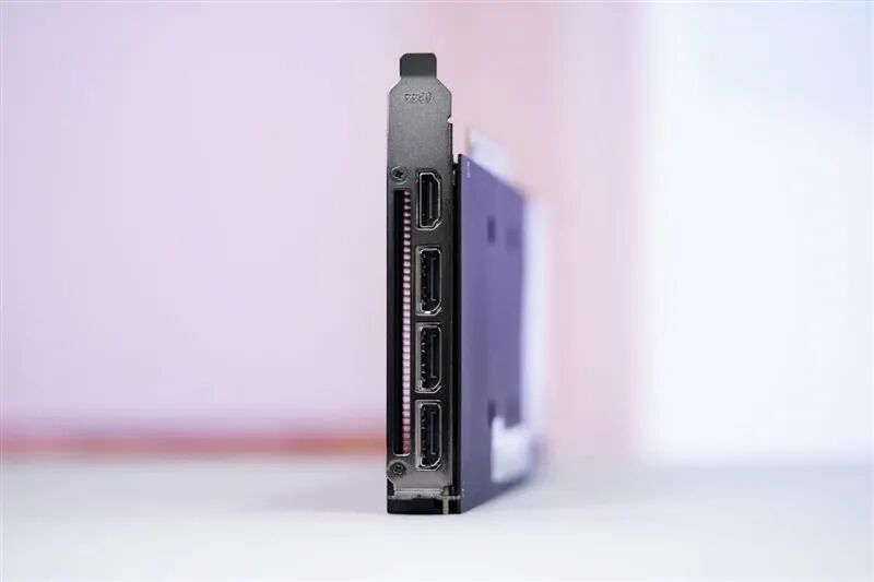 影馳RTX 5060 Ti無雙MAX顯卡的單槽擋板,在三個DisplayPort 1.4b接口和一個HDMI 2.1b接口旁邊,還設計了一條極窄的散熱出風口。
