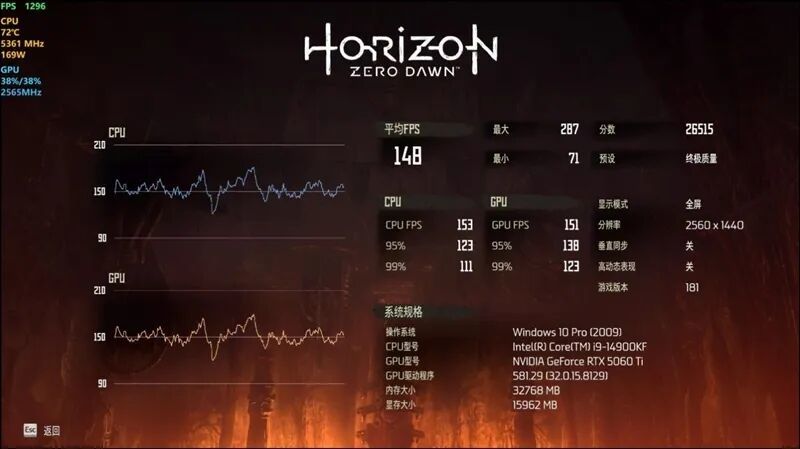 在《地平線:零之曙光》中,使用終極質量畫質進行測試,4K分辨率下平均幀率爲93,2K分辨率下平均幀率爲148。