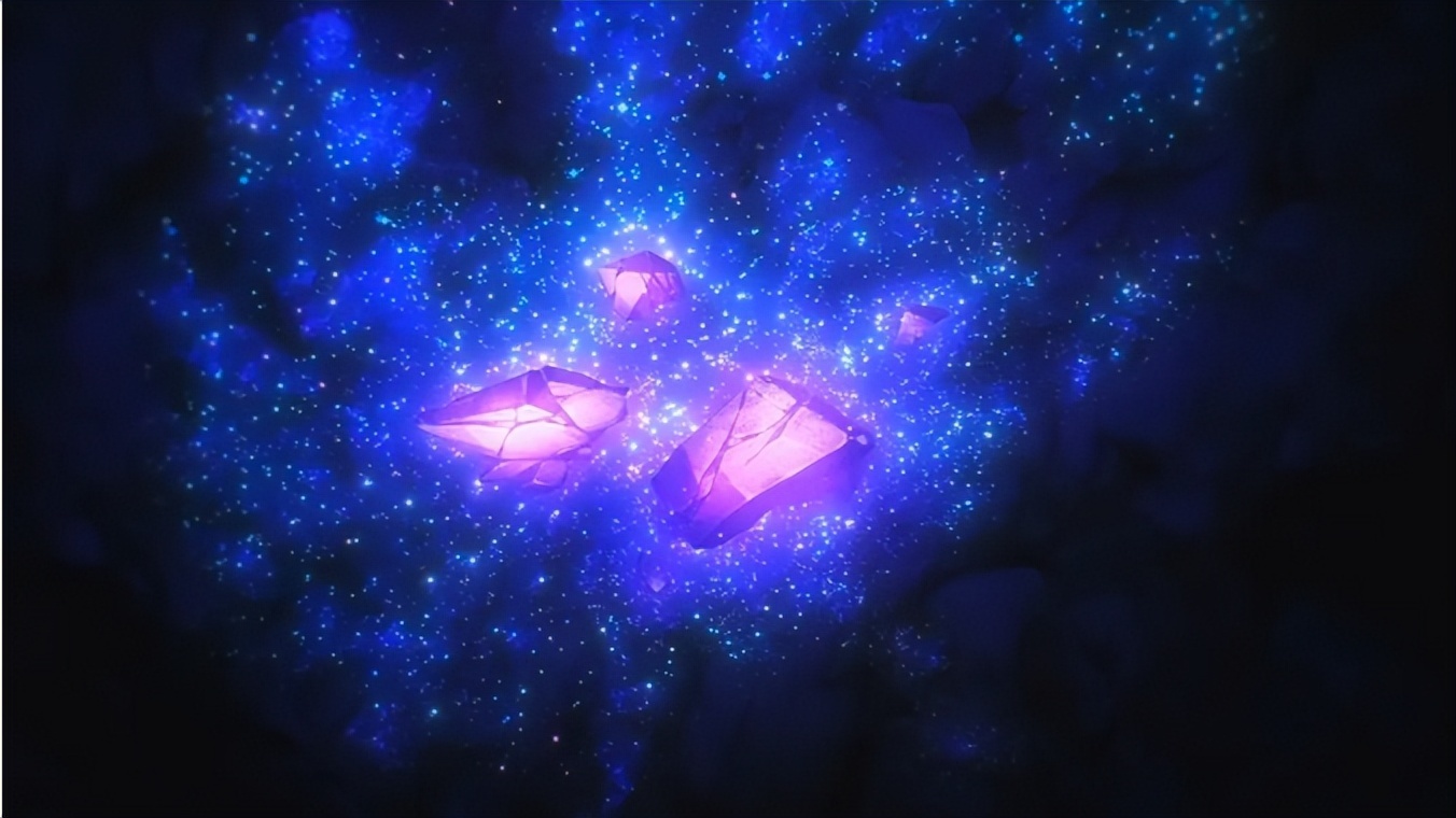 于是,在《琉璃的宝石》中,既能看到宏观上令人震撼的晶簇景观,也能看到微观层面被精确还原的细小结晶与反光。