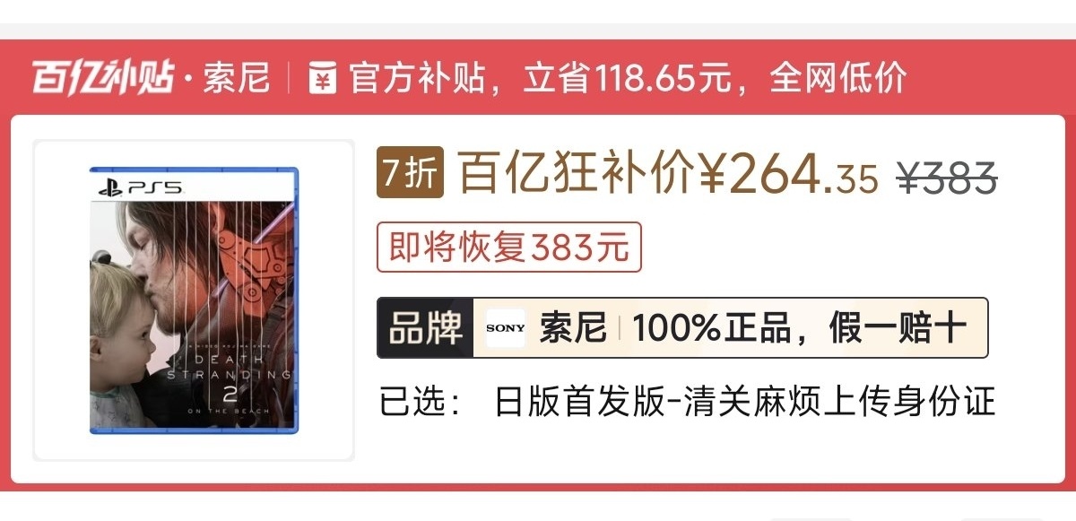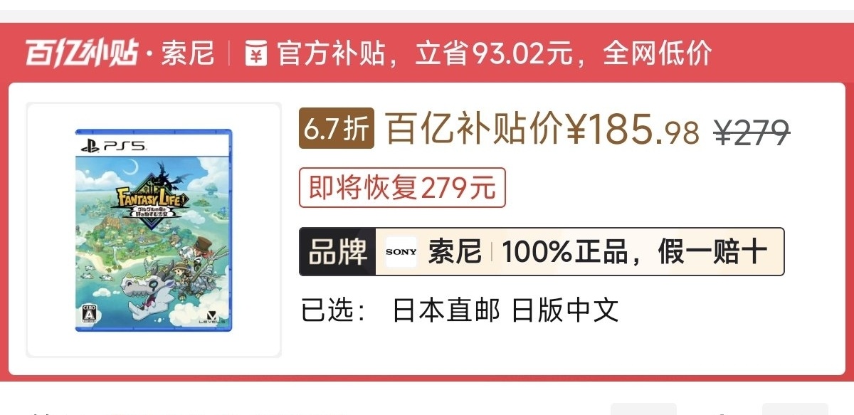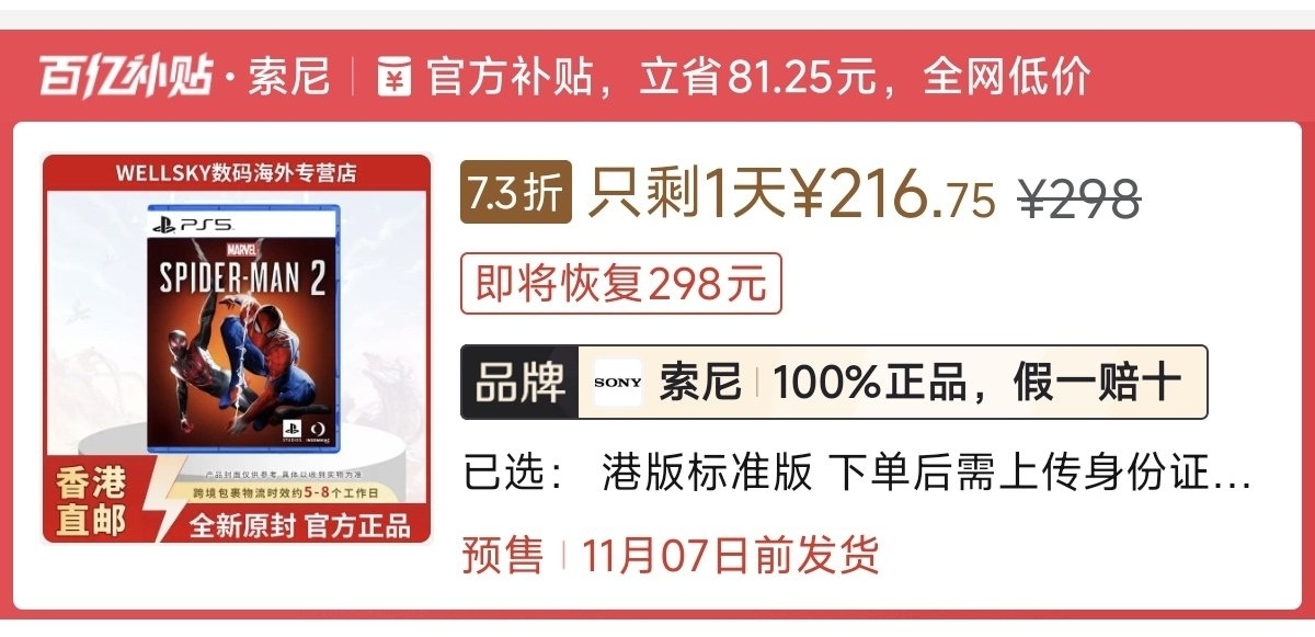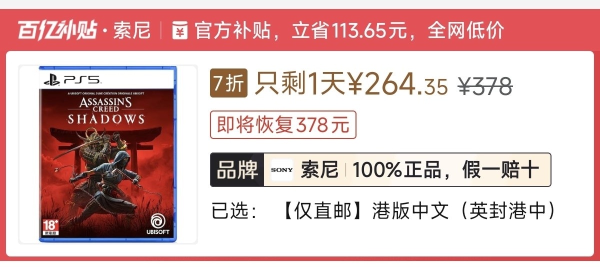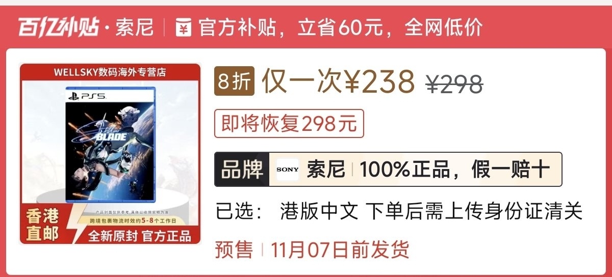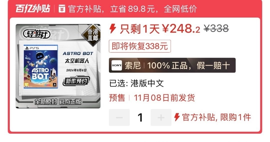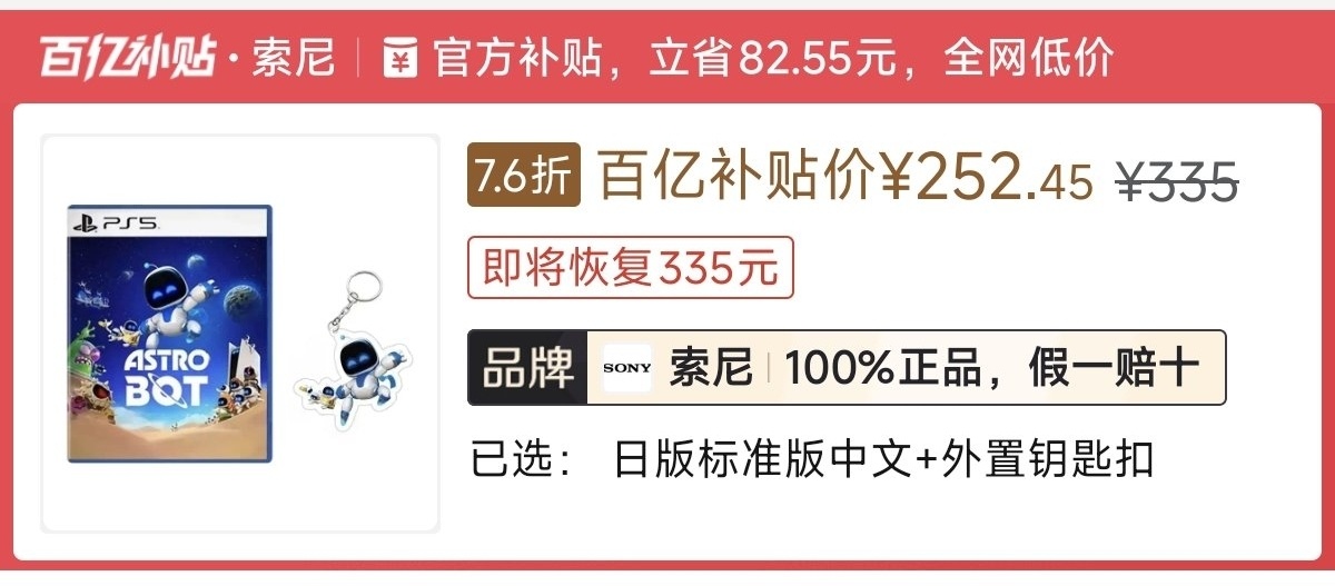 本週低價:日版252元,港版248元