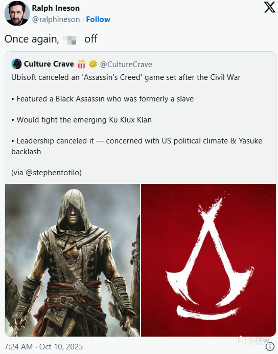報道指出,如果取消原因確實與種族主義反彈有關,這將是育碧的一次“怯懦之舉”,尤其考慮到《刺客信條:影》儘管遭受爭議,銷量仍領跑2025年新作。該被取消的項目據稱已於去年終止,目前尚不清楚下一部《刺客信條》作品的開發方向。