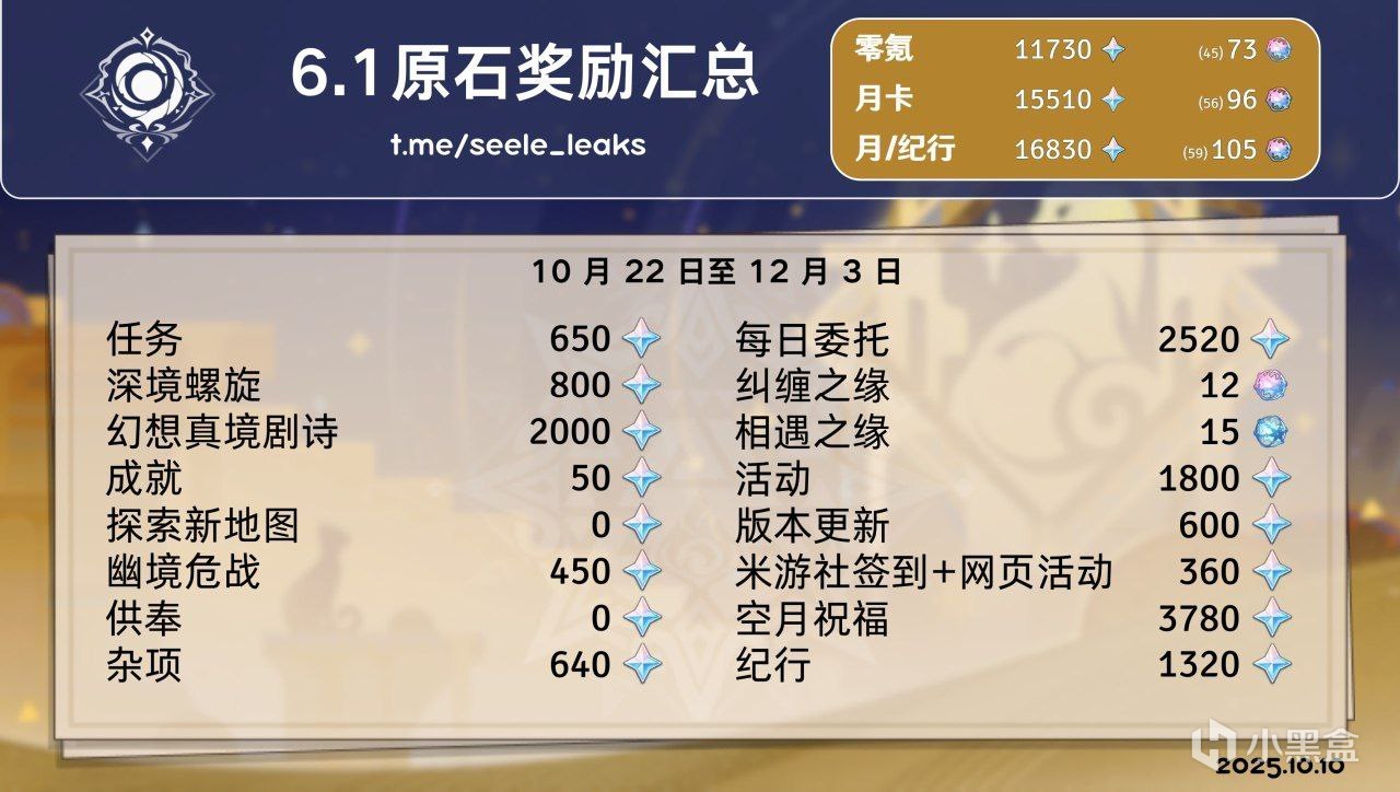 6.1测试服原石统计已出,时间:10月22日至12月3日