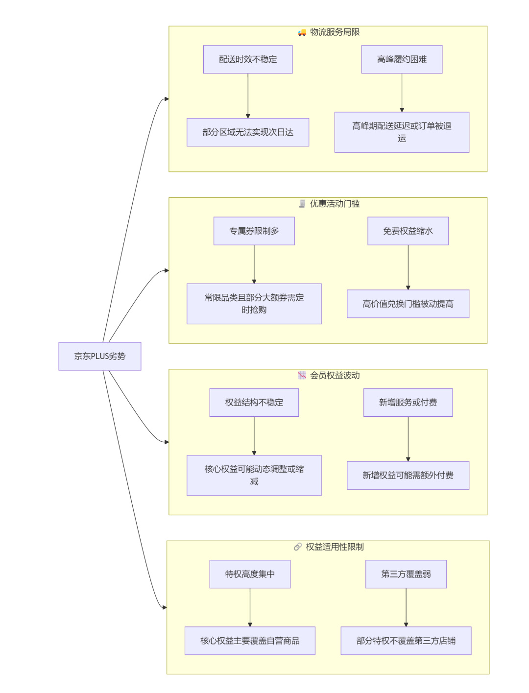 京東PLUS劣勢:年卡開卡費用相對較高,不經常購物可能不划算。提供的券種類、數量雖然多,但實際使用時可能有優惠感知不明顯的情況,有時候需要較高額度的消費才能抵扣。生活權益入口隱蔽,如果不是特意點進去看很難知道優惠福利內容,線下消費一般都不會想起來用,顯得有些多餘。
