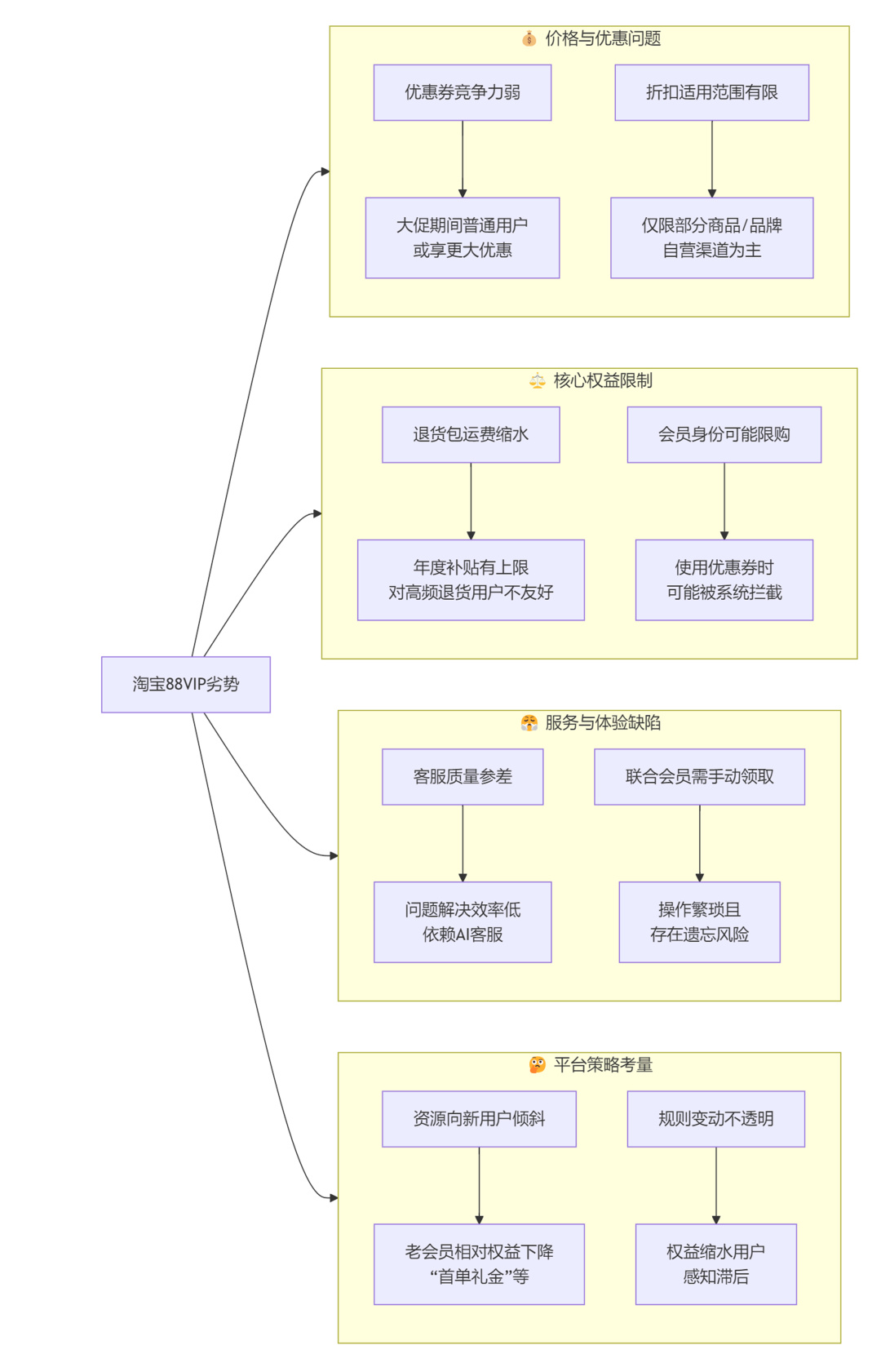 淘寶88VIP劣勢:開通存在硬性門檻,淘氣值1000以下需要888元/年。線下生活權益相對京東PLUS要少很多。物流配送速度及售後效率不如京東自營高,對應的週期會長一點。