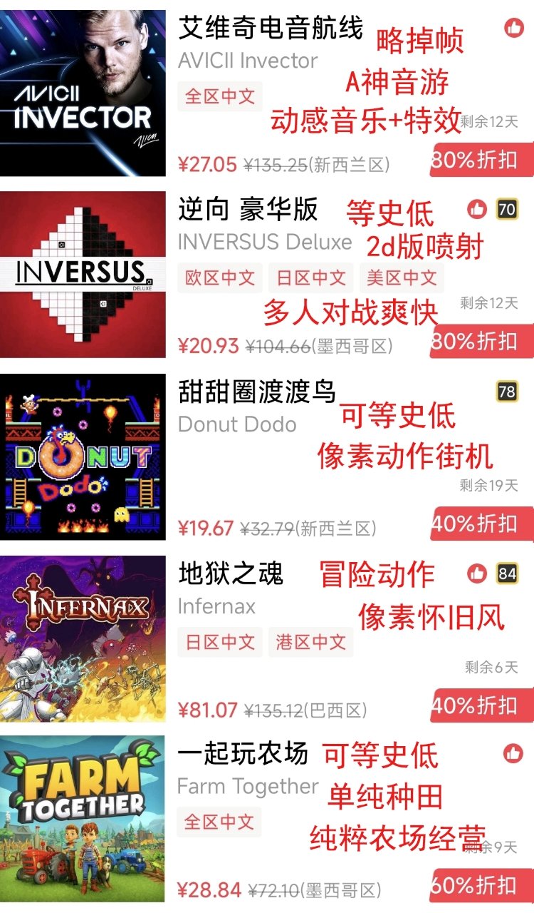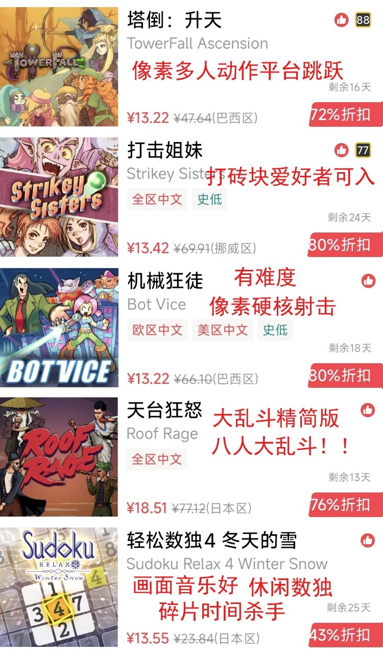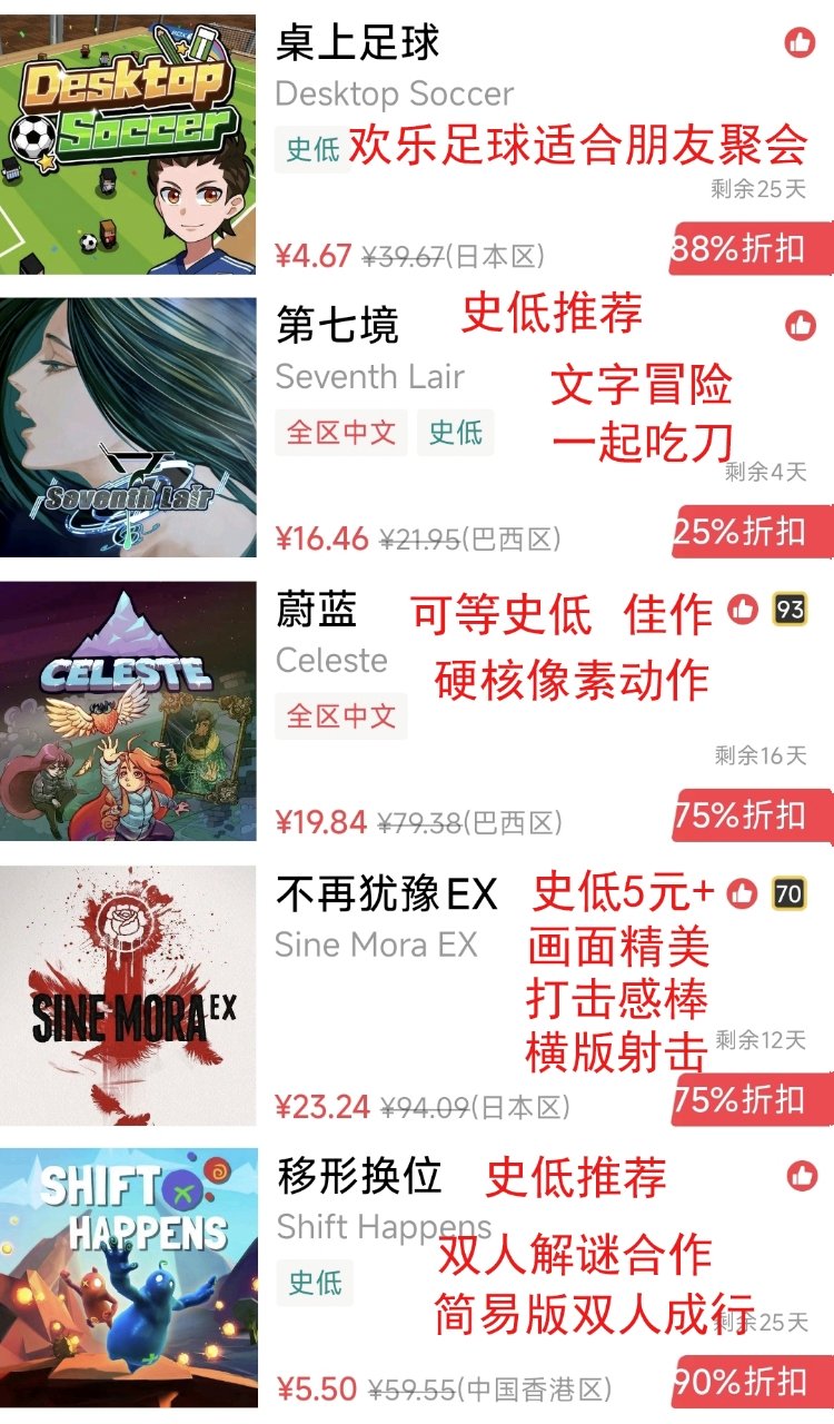 標註史低推薦入手的,基本是經典遊戲 都是我個人推薦