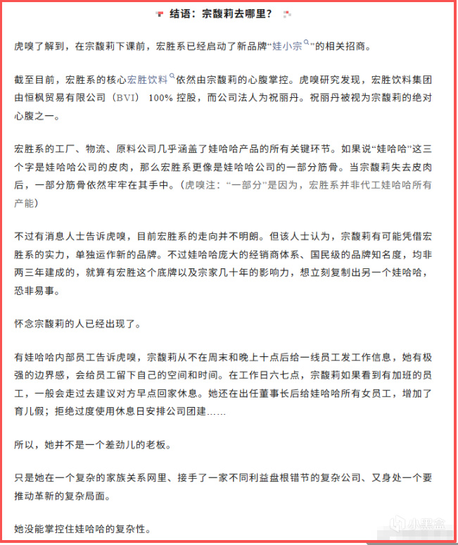 在職場人士愈發關注工作生活平衡的當下,宗馥莉此前在娃哈哈的管理方式曾被內部員工提及。