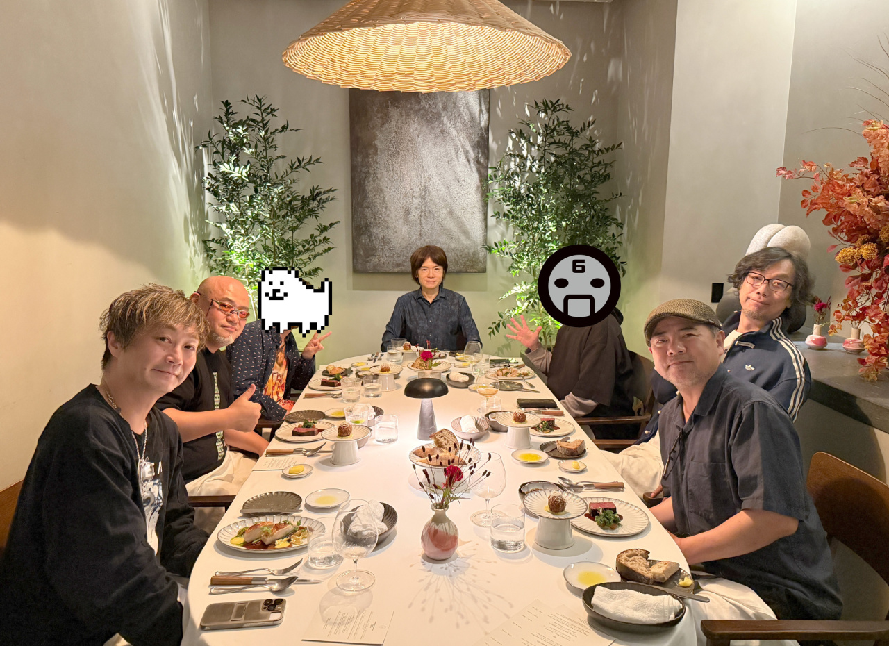 樱井政博在今天下午分享了一张游戏制作人聚餐照片,从左到右分别是: