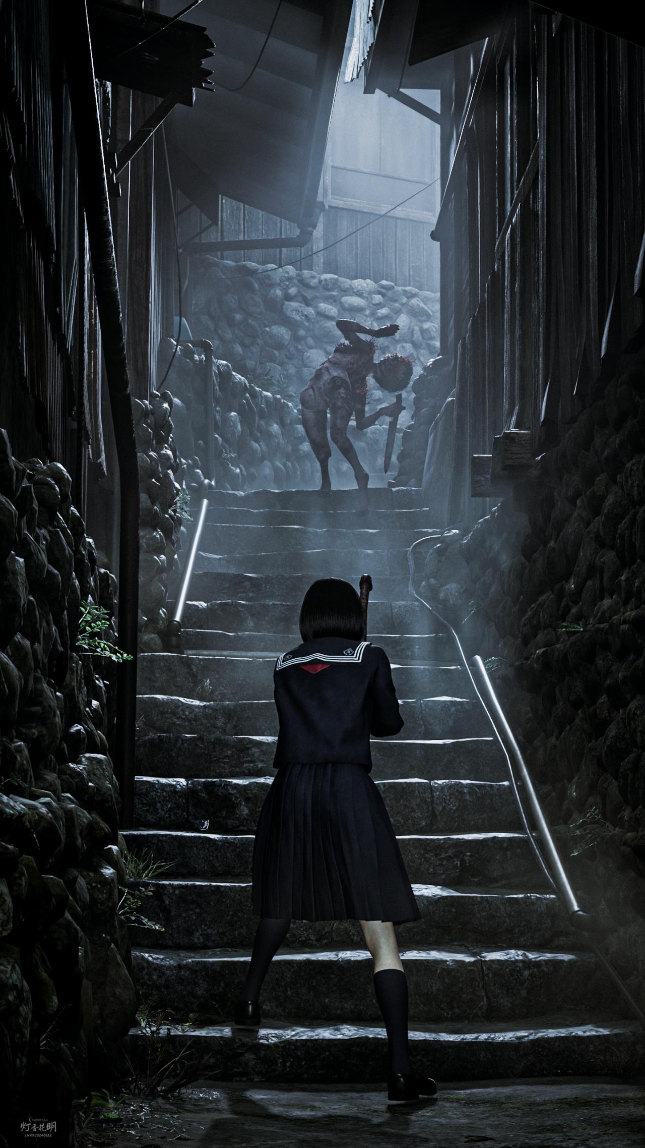 不过本作的画面我相当喜欢,雾气弥漫的昭和时代小镇建筑加上日本民间传说的鬼怪形象让我对本作的美术相当认可,所以在打完一周目后就立马开新周目摄影了。