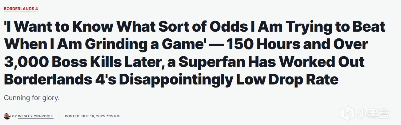 **IGN報道** 10月10日,一位《Borderlands 4》超級粉絲Siphonicfir通過150小時遊戲時間和超過3000次boss擊殺,計算出該遊戲傳奇物品的專用掉落率僅爲5%。這一數據在Reddit社區引發熱議,揭示了端遊磨裝備的真實難度。