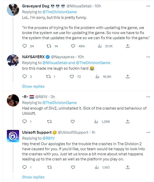 2月4日,《全境封鎖2》的團隊在Twitter上表示,原定於2月7日更新的第十一賽季由於技術問題將被推遲,更新時間待定。今日,《全境封鎖2》團隊在Twitter上宣佈,在創建修復遊戲本地化問題的更新過程中,發現了一個導致遊戲整個構建系統崩潰的錯誤。也就是說在這個錯誤修復之前,遊戲將無法更新。看來十一賽季的更新起碼要等到這個問題修復之後了。