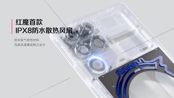 在硬件实现层面,脉动水冷系统配备了红魔自研的微型陶瓷泵——官方数据为超低功耗 80mW、厚度 0.85mm、输出压力最高可达 100kPa;与之配合的是主动散热风扇“驭风 4.0”,官方宣称最高转速达 24,000 rpm 并支持 IPX8 等级的防水能力,系统通过“贯穿式瀑布风道 3.0”实现风路与水道的协同散热。