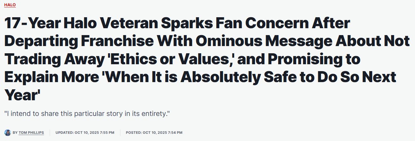 **Halo Studios** 資深藝術總監Glenn Israel宣佈結束17年Halo開發生涯,此舉引發粉絲對系列未來的擔憂。