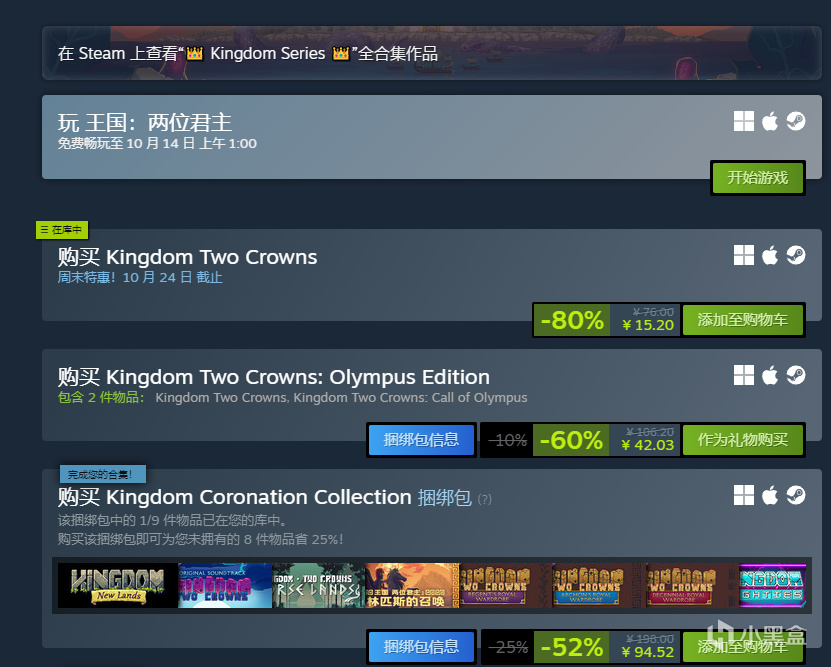 《王國:兩位君主》系列遊戲現正享受最高90%折扣!喜歡的朋友可以試試看噠!