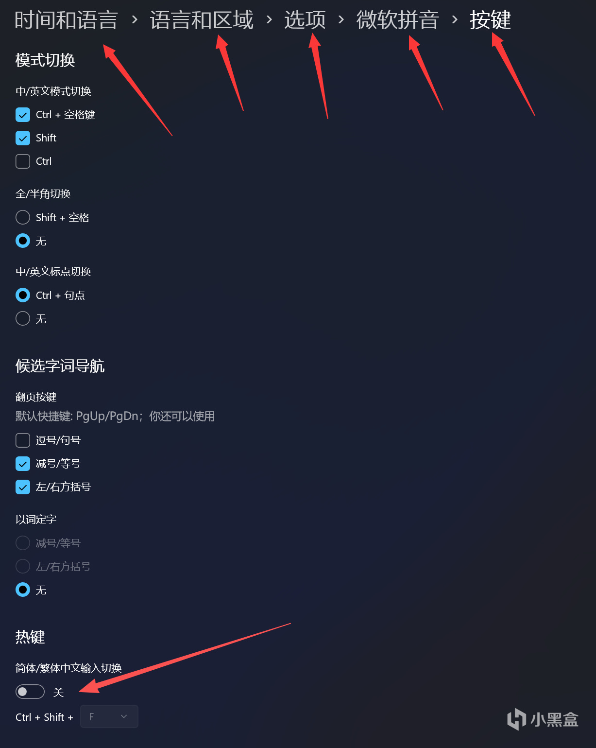最后游戏中可能遇到一个不小心使用了中文输入法问题:如果不小心按到Ctrl+Shit+F 简体切换成了繁体,可以在这里关闭: