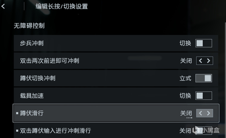 蹲伏滑行看喜好设置,我的是关闭,双击蹲伏输入进行冲刺滑行推荐关闭