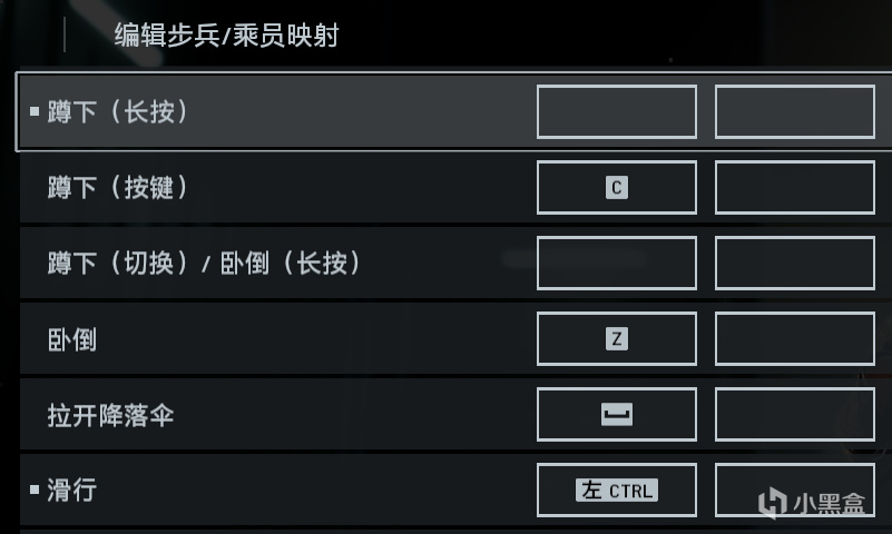 这里推荐把蹲下(长按)的按键取消掉(按键盘左上角ESC取消),滑行处推荐改为左CTRL键,这样的好处就是Shift+左Ctrl是滑铲(很丝滑),C是蹲下,Shift+C是蹲下快速跑,Z是趴下,Shift+Z是向前扑,这样就是蹲就是蹲,滑铲就是滑铲,趴就是趴,推荐尝试下。