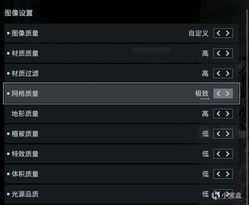 根据显存情况自己调整的选项:图像质量,材质质量,材质过滤,地形质量,这几个选项根据自己的显卡和显存适当调整,网格质量我推荐拉高,这样看的更远,植被推荐拉低,防止草丛怪,剩下的选项都推荐低,保证流程,以及特效太华丽影响对枪捞薯条
