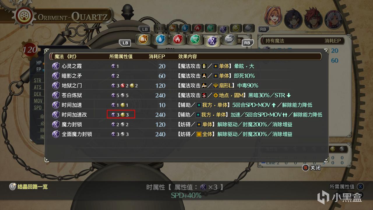 例如要學會時間加速改,需求是3時3空,這裏放上3時的行動力3,再放一個3空的命中3就能學會這個魔法。