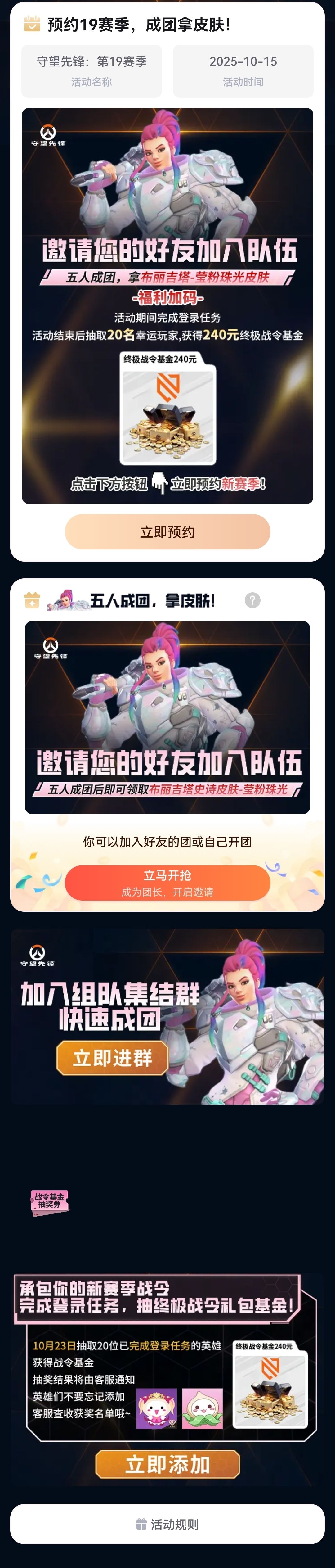 一起预约守望先锋第19赛季拿皮肤-复制以下内容到任意vx对话框即可参团#小程序://网易会员/你的好友喊你领皮肤啦~/iK5XaRSw7gGcMNm