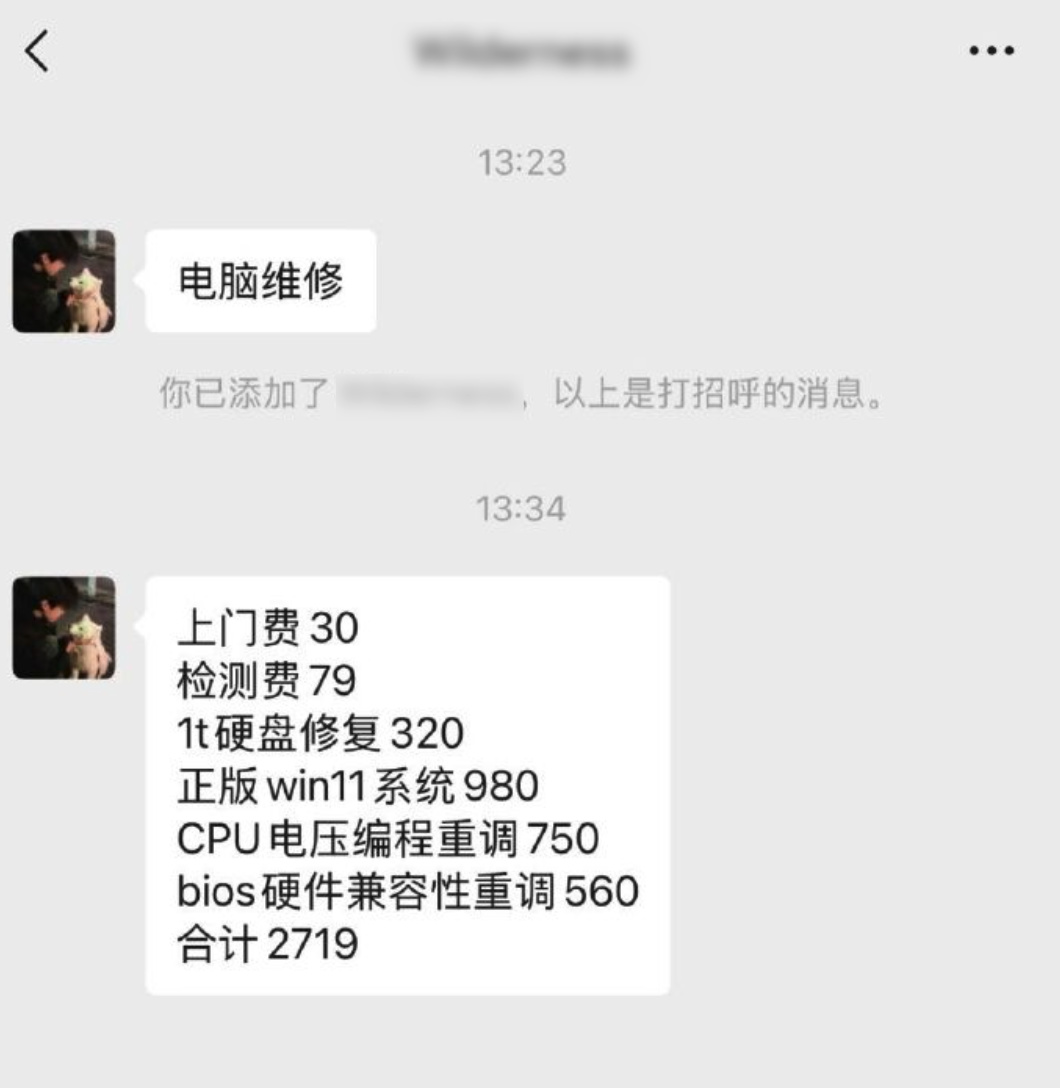 有網友找師傅上門修個電腦,最後居然掏了 2719 元?