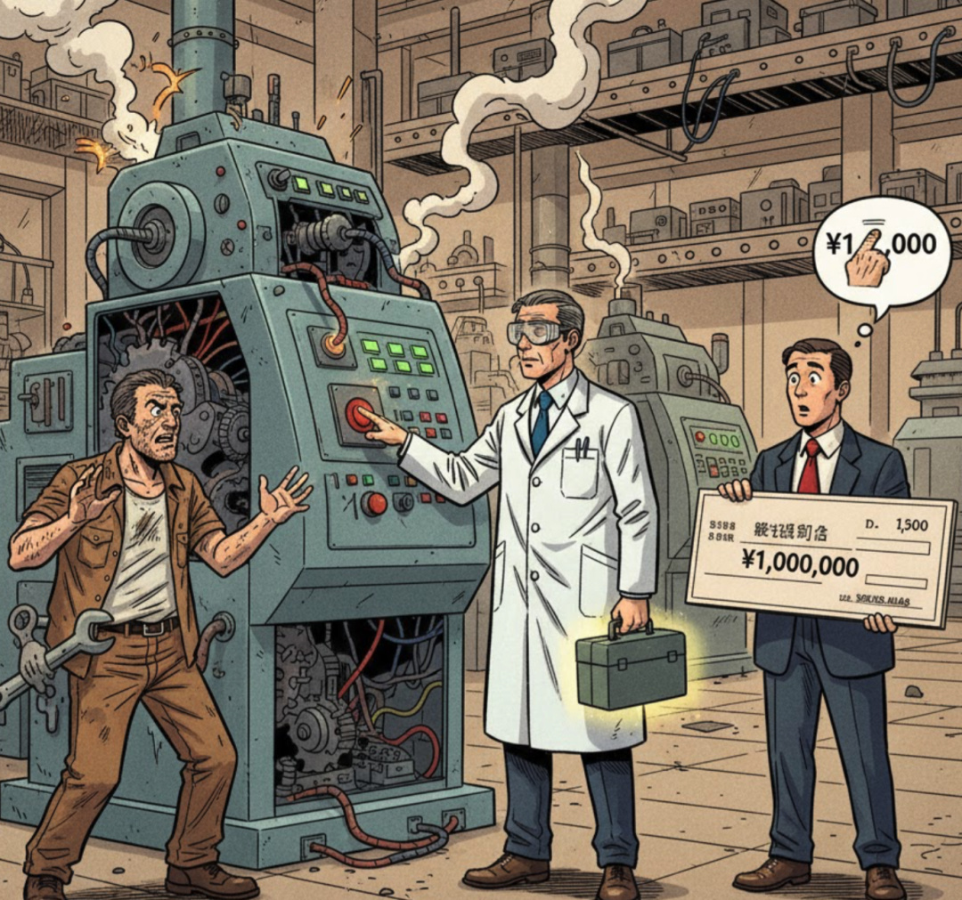 某臺設備發生了故障,公司請專家來修理。專家到場後,只是在某個地方按了一下開關,機器立刻恢復正常。專家開出費用 100 萬:一百塊是勞動成本,剩下的高額費用是“知道應該按哪個開關”的經驗和技術價值。