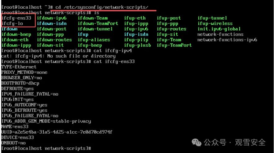 在这个文件夹中可以查看网卡配置,vi网卡后可以修改ip地址。