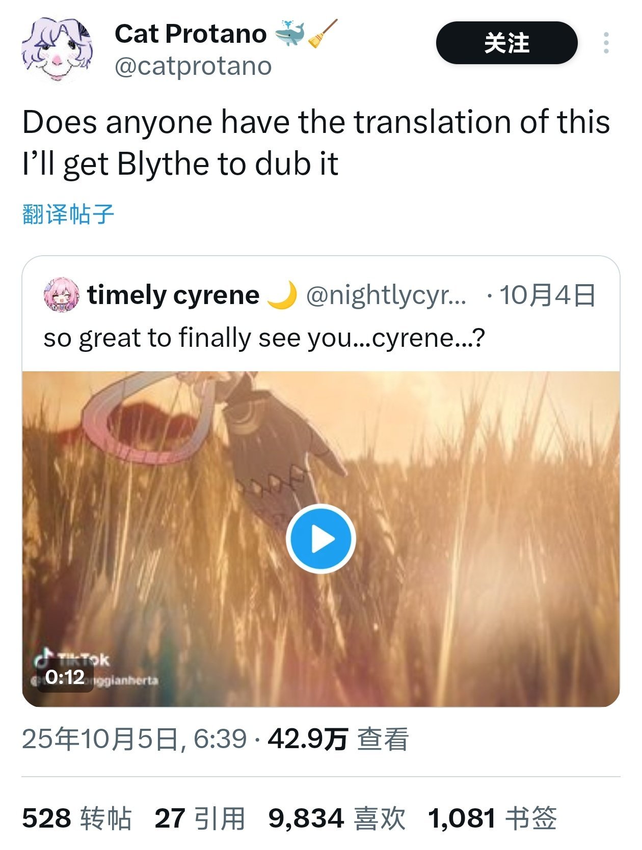 更离谱的是,这场“浪漫风暴”还得到了官方级加持。来古士的英文配音演员不仅主动为恶搞视频配音,还将“憋笑录音现场”公之于众,一句“of course,this will be a romantic allegory like none that has been told before”,被网友调侃“下一秒就要笑出声”。