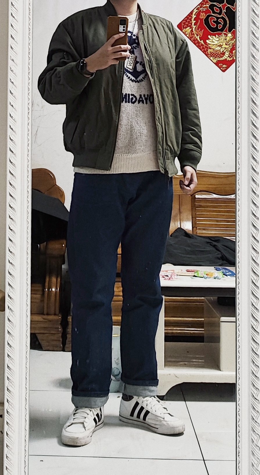 我还有一件飞行员夹克,从高中穿到现在差不多五六年了,是361和高达联名款,现在已经绝版了,我的最爱,质量非常好,偏薄一点,也是加棉的