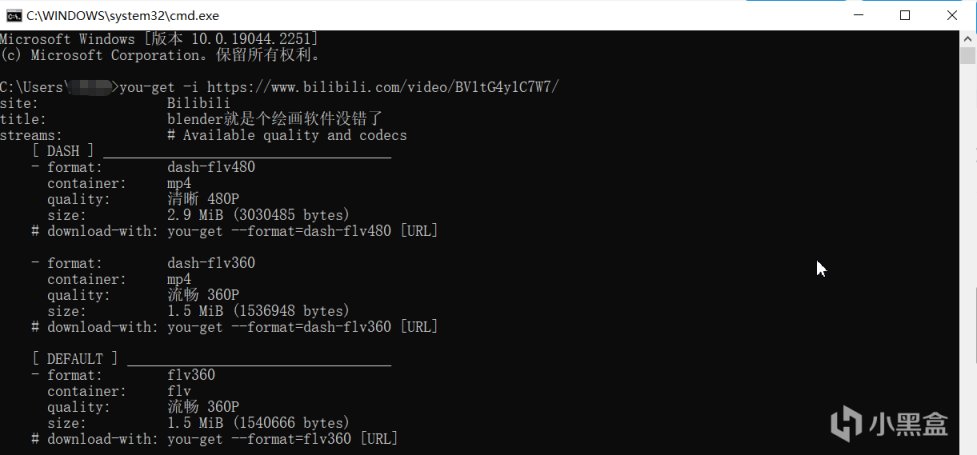 它解析視頻時可以選清晰度,如下圖(B站首頁隨便找的視頻),使用"-i"獲取它的詳細信息: