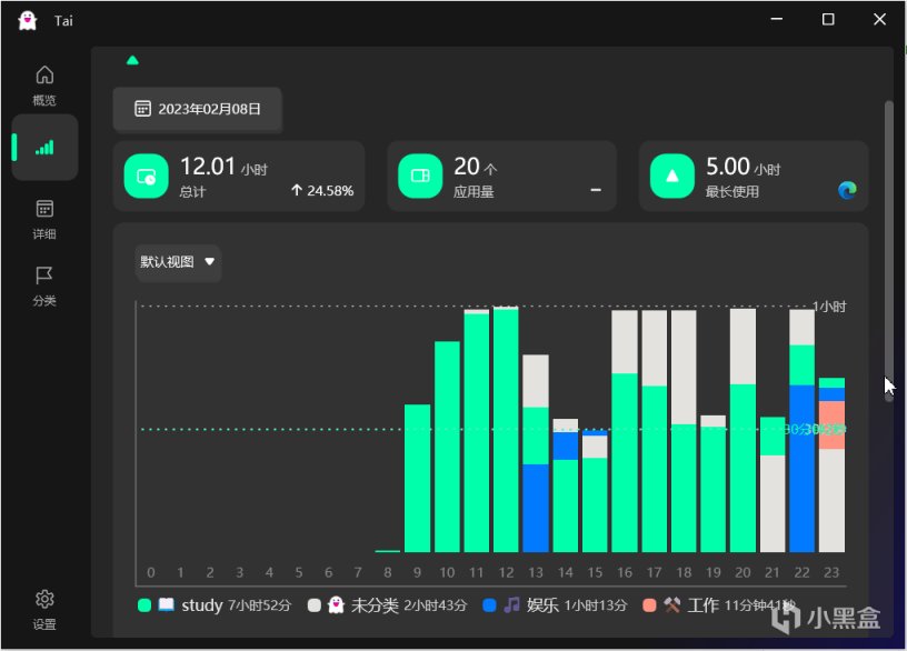 Tai是一款依賴 .NET Framework的PC端軟件時長統計軟件,類似於 iPhone 的屏幕使用時長一樣,Tai 負責統計你每一個軟件的使用時長。需要注意的是,使用時長並不是軟件的存活時間,而是軟件從獲得焦點時開始到失去焦點後這段時間。