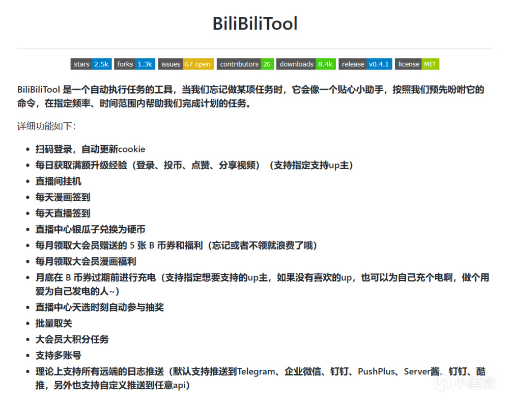 顧名思義,B站小助手,它是自動化執行一些關於B站常見操作的工具,不過可能需要一個服務器用於部署(畢竟自己電腦不一定經常開着嘛...),相關功能見下圖。