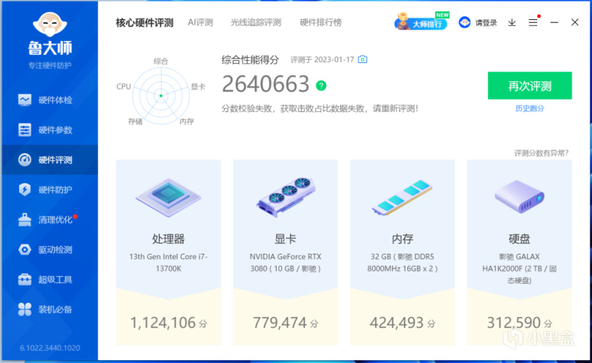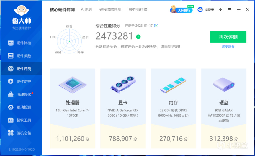 i9虽香,但兜里没那么富裕,一颗16核24线程设计的i7-13700K也算得上时下的高端配置;