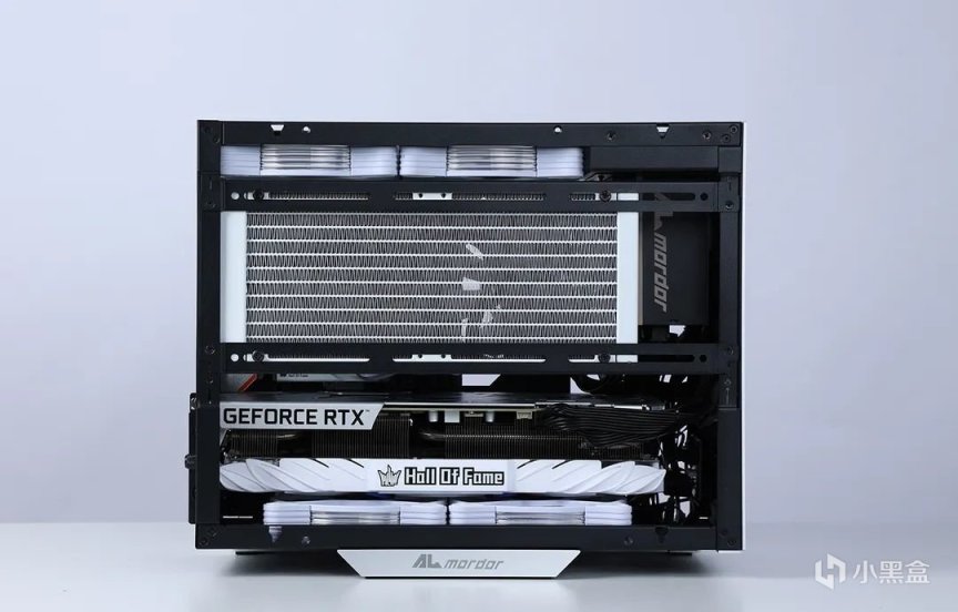 机箱虽小,但是内部空间其实还蛮大的,支持MATX/ITX主板,还能支持240水冷排,显卡支持355mm以内长度,提供了最多7把120mm风扇安装位,搭配上大面积散热网孔,散热压力不大。