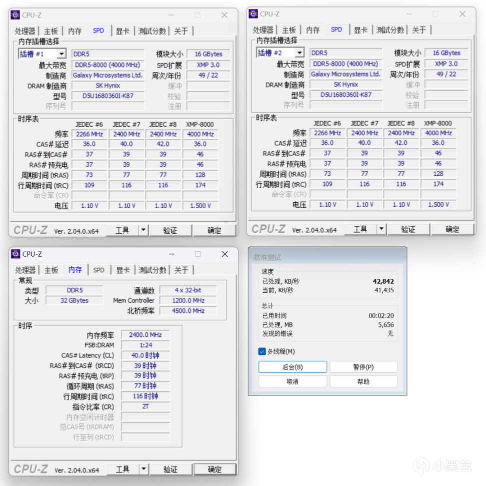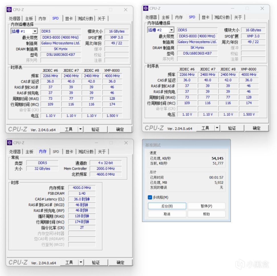 WinRAR解压缩基准测试,内存默频状态下,WinRAR的解压缩速率可以达到42842KB/s,将内存XMP至8000MHz后,WinRAR的解压缩速率可以达到54145KB/s;