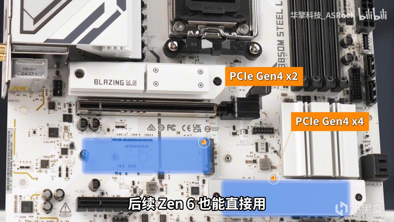具體來說,視頻中間出現了一條信息:“後續 Zen 6 也能直接用。” 這表明華擎的一些 B850 主板甚至可能不需要 BIOS 更新就能直接支持 Zen 6 處理器。