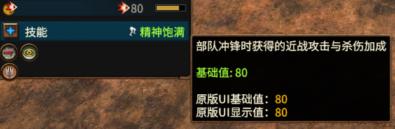 冲锋buff效果也就是冲锋后,带来的短时间内面板数值的提升,比如一个单位冲锋数值为80,你可以简单理解为近战攻击+80,武器威力会按破甲和不破甲比例分配这个的+80。