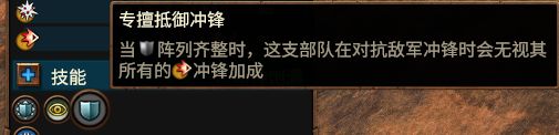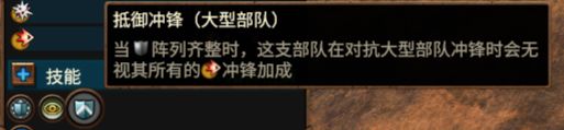 也就是当队伍阵列齐整时,有对应抵御冲锋词条的部队,这支部队在对抗敌人冲锋时,减免大部分敌人造成的冲击伤害和无视其所有的冲锋加成。