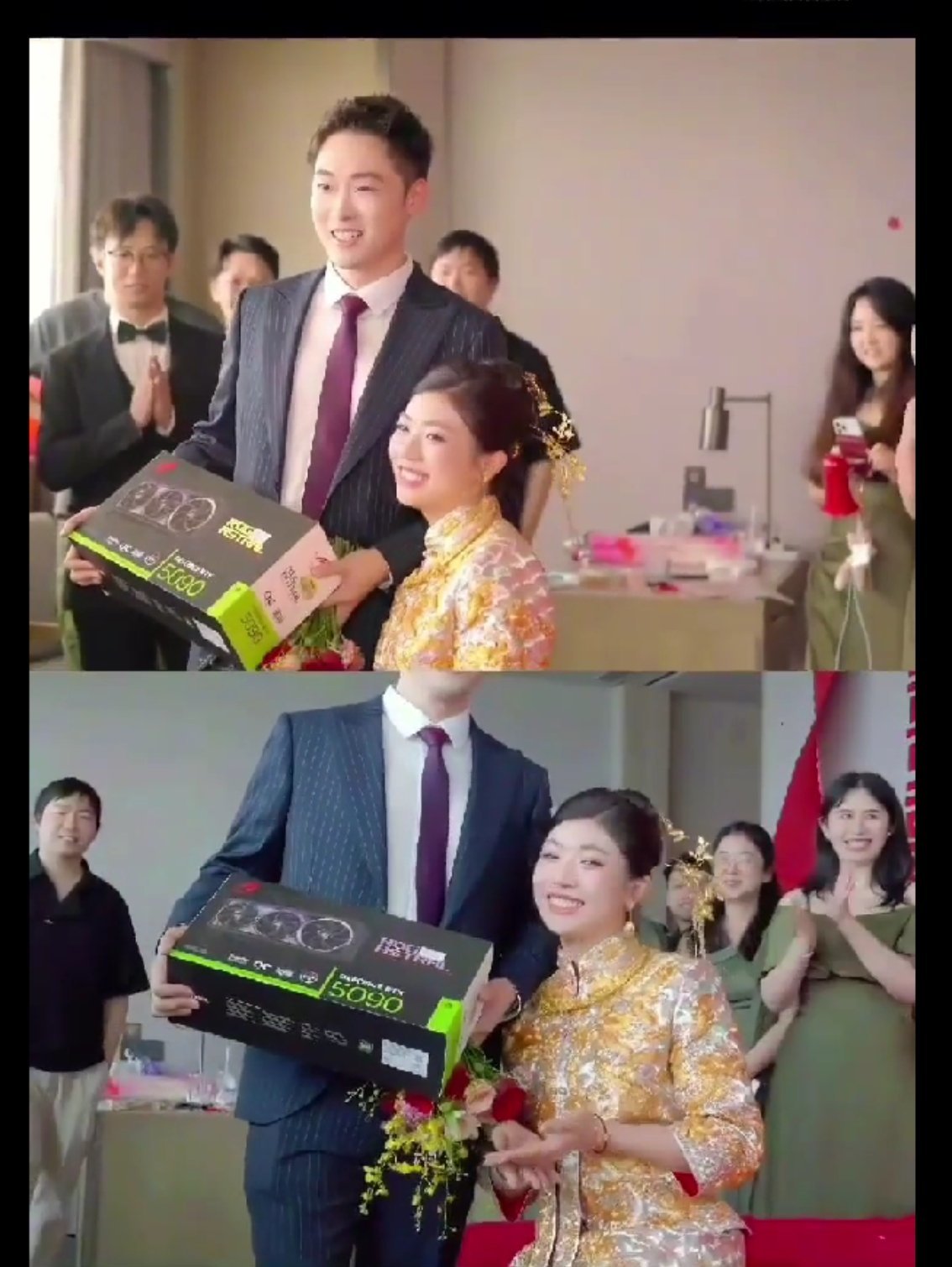 新郎成功解题后,新娘才揭晓惊喜礼物——一张原版非阉割的RTX 5090显卡。这份礼物不仅是高性能硬件,更凝结了新娘对新郎爱好的理解与支持。该视频被分享至Reddit后迅速走红,网友纷纷赞叹这是“别人家的媳妇”。有人调侃希望他们的婚姻充满“甜蜜的火花”,而非显卡在机箱里“冒火花”。