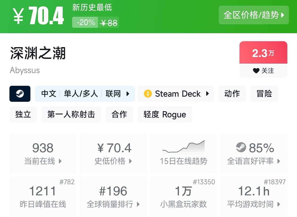 大家好,沒錯,又是我,你們的老朋友亦然,在最近,又有很多遊戲都迎來了折扣,其中不僅有史低遊戲,還有新史低,範圍大,力度也不小,其實很多人都喜歡史低遊戲,因爲誰都喜歡在遊戲最便宜的時候買,我將爲各位進行一個彙總,希望我的彙總,能夠幫助各位盒友挑選心儀的遊戲。