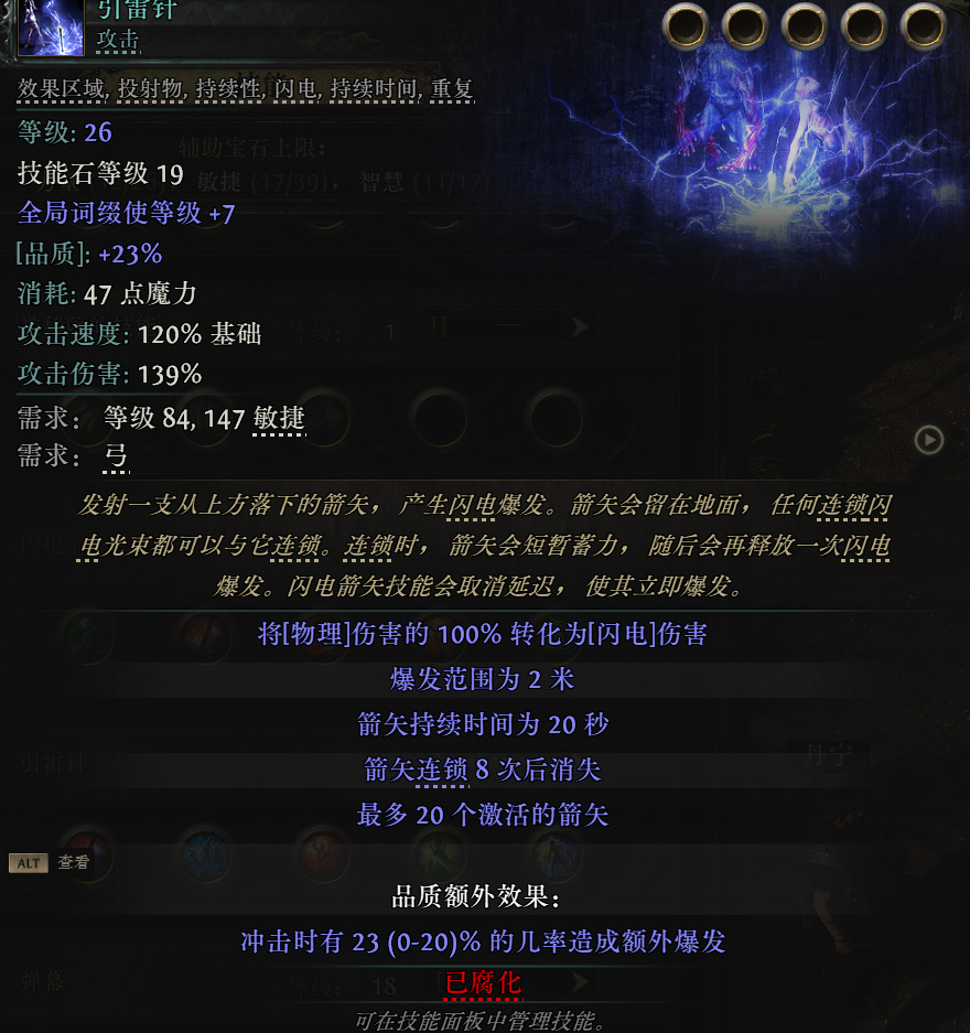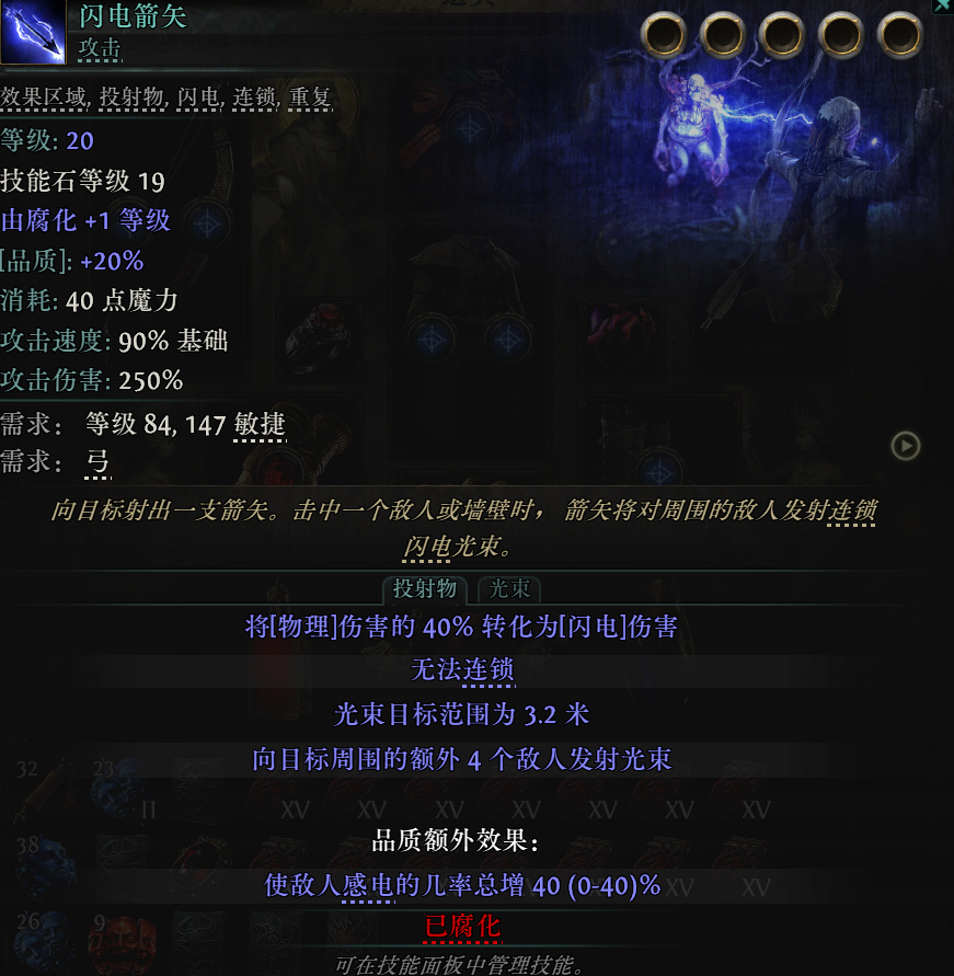 這一步可以用未切割的技能石獲取我們想要的技能,以銳眼爲例就是核心輸出技能閃電箭矢和引雷針。(直接買未切割的18級技能石也很便宜,成本幾乎可以忽略不計)