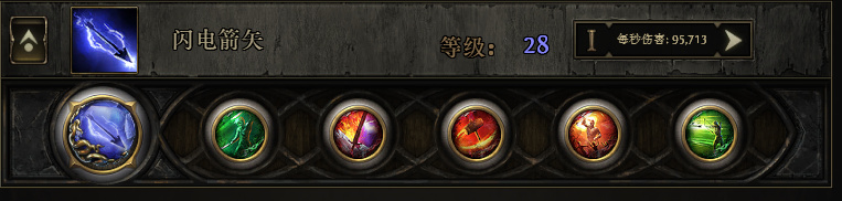 來看看前後的面板變化,這裏小二原來的技能石是19級,在不改變裝備的前提下,閃電箭矢的傷害從89843提升到了95713。