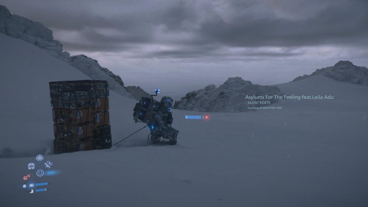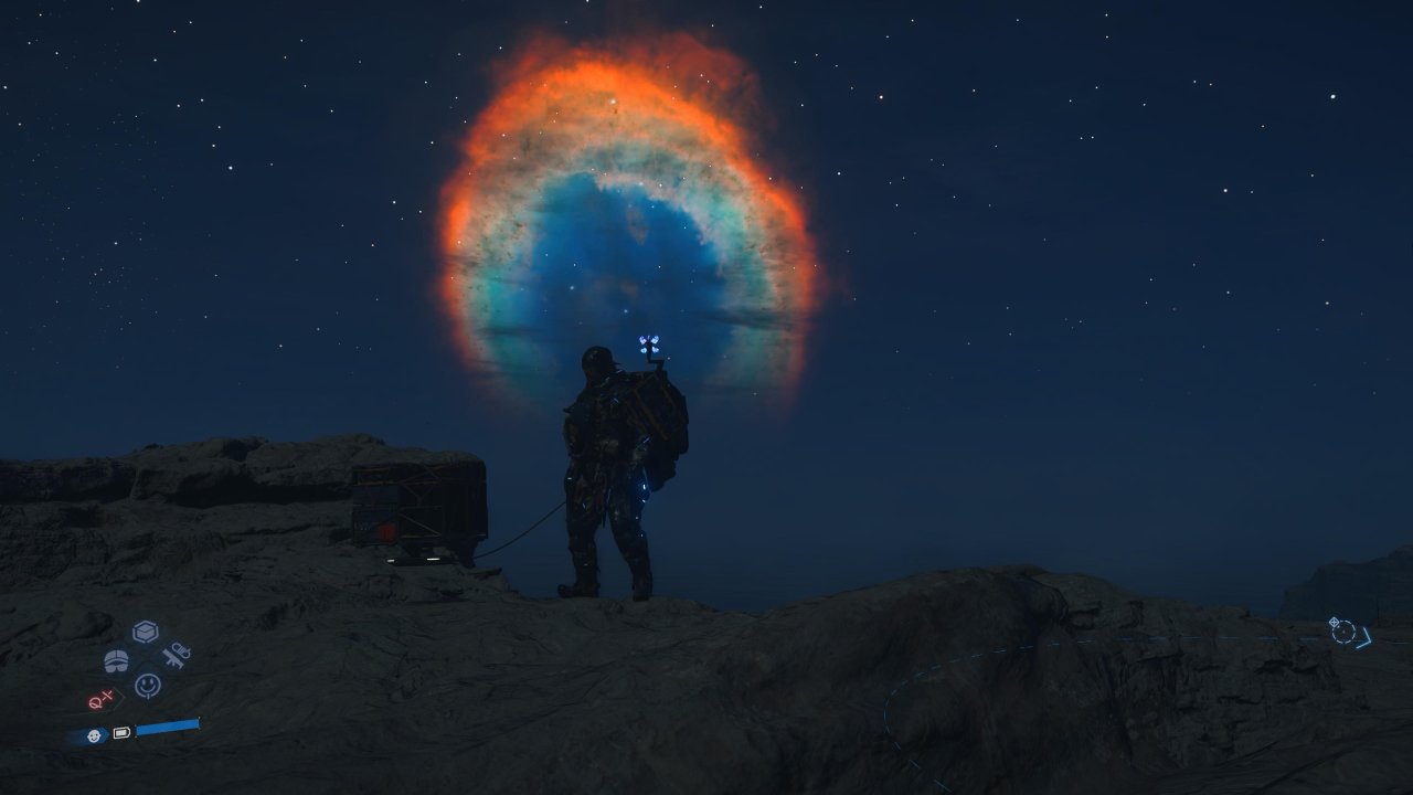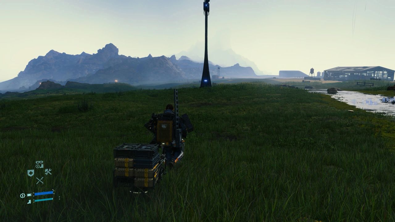 玩死亡搁浅 1 的时候,真的会有非常强的代入感,虽然我的肉身在城市边缘的昏暗寝室中,弓着身子、戴着廉价的有线耳机,但我精神上的体验却极度接近穿着厚重的靴子走在泥泞的山路上,顶着寒冷刺骨的时间雨,背着人们赖以生存的货物,在众人的期盼中四肢并用地向隔了一整座山的节点城艰难前行,广阔、美丽又危险的地表上,大概只有我一个活人。那种空灵、和对现实生活的抽离,令死亡搁浅 1 成了无法替代的东西,隔一段时间就会想念。