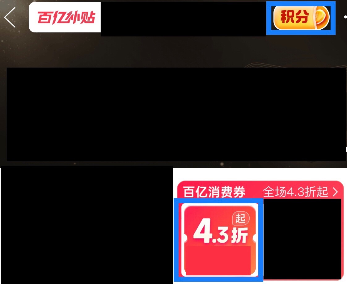 領券入口如圖,85折券在下方4.3折圖標處,v3減50券在右上角積分處。
