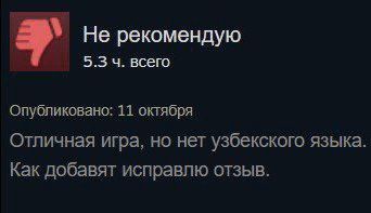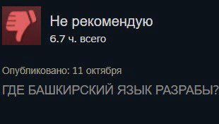 這些差評中,玩家們在肯定遊戲質量的同時,也因遊戲不支持其母語而選擇“不推薦”。除俄語外,用戶還提到了白俄羅斯語、烏茲別克語甚至巴什基爾語等小衆語種的本地化需求。值得注意的是,留下這類語言相關差評的玩家通常遊戲時間較短。