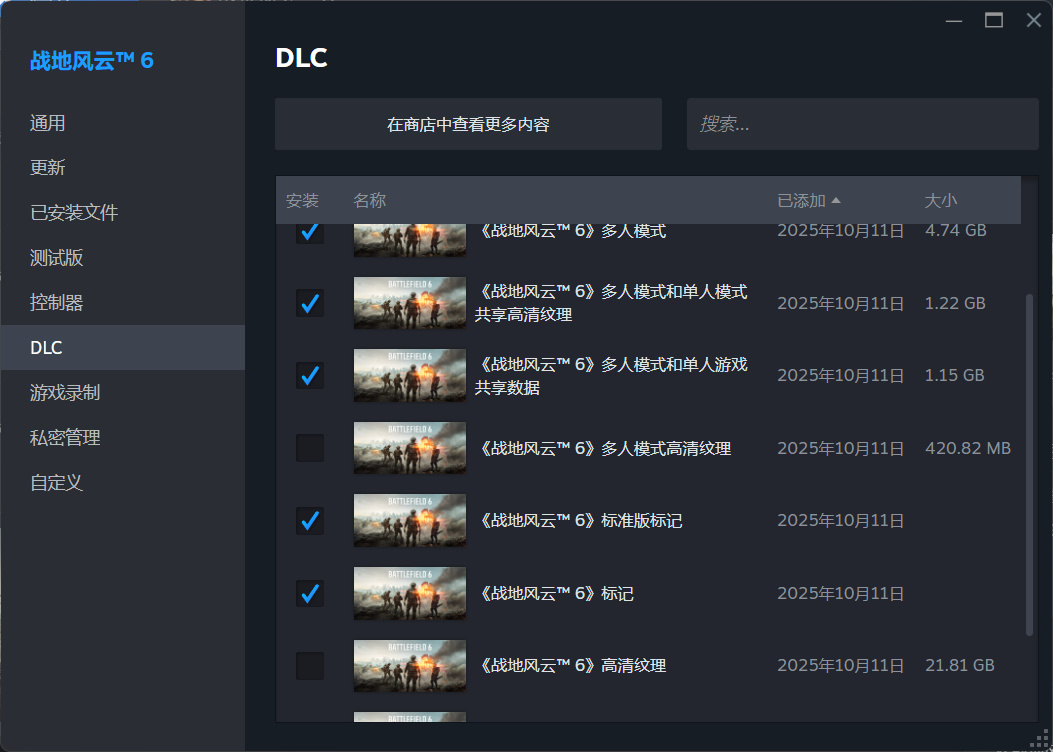 下面寻找《战地6》游戏,没有则添加一下,位置获取Steam:管理-浏览本地文件