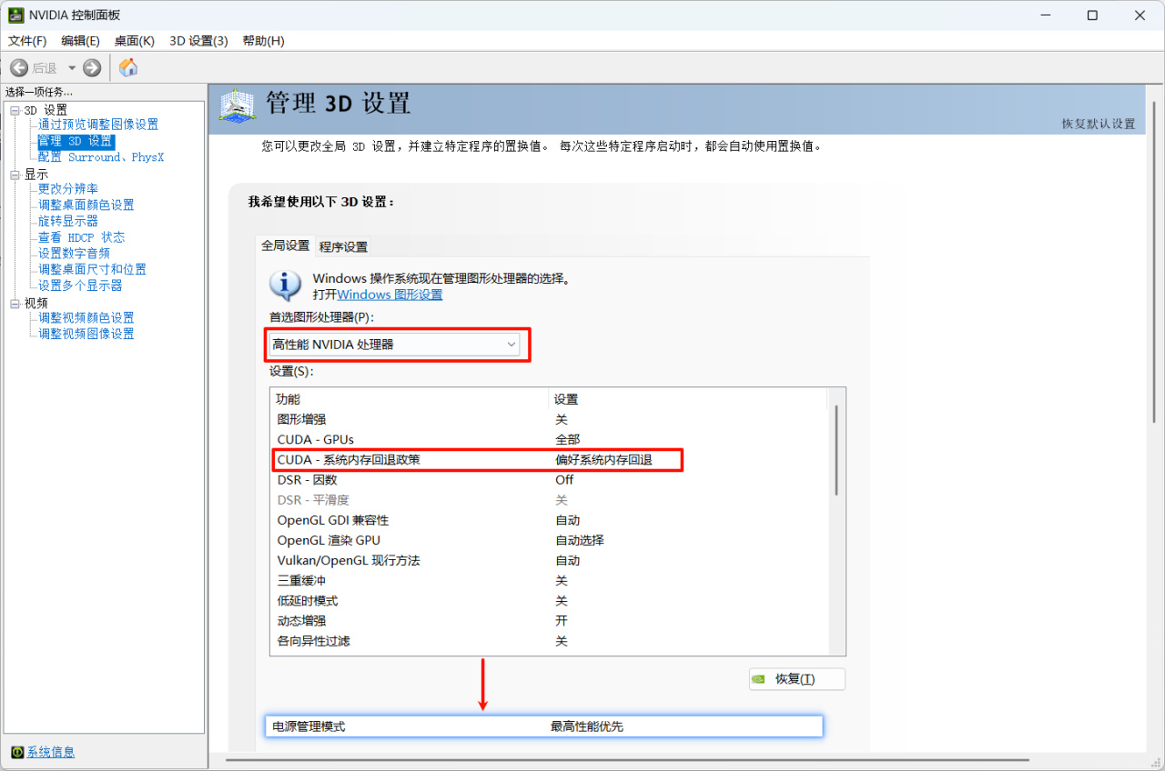 GPU首选项选择高性能