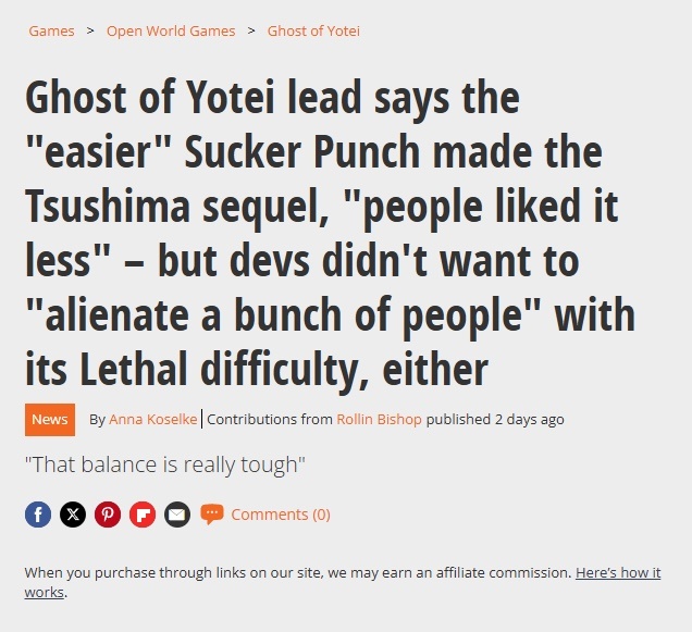 近日《羊蹄山之魂》的创意总监 Jason Connell 在接受GamesRadar+采访时表示,作为《对马岛之魂》的续作,本作似乎因为“难度较低”而不太受玩家喜欢,但开发团队也不想因为超高难度而疏远一群玩家,这种平衡很难掌握。